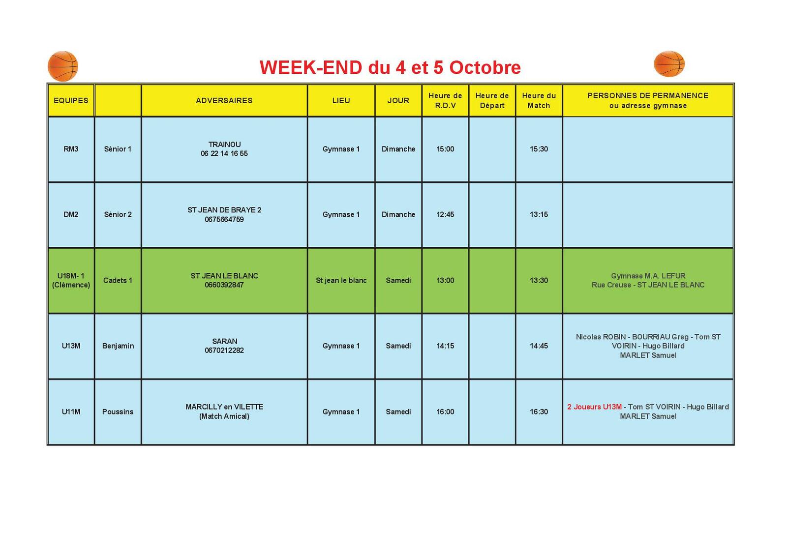 News 08 : planning des matchs des 4 et 5/10/2025